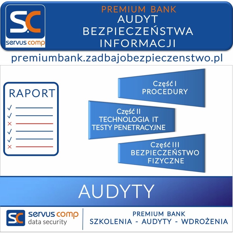 Więcej szczegółów na temat audytu można przeczytać: https://premiumbank.zadbajobezpieczenstwo.pl/audyt-bezpieczenstwa-informacji/